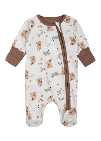Комбінезон для новонароджених на блискавці. Чоловічок пошитий з текстурованої тканини інтерлок - це мʼяка натуральна тканина, приємна до тіла, яка ідеально підходить для чутливої шкіри немовлят. Комбінезон має забарвлення ментолового кольору із ведмедиками, яке підійде як для хлопчика, так і для дівчинки. Чоловічок має рукави-трансформери, які можна підвернути у разі необхідності. Стопи ніжок закриті. Застібається за допомогою блискавки по діагоналі. Такий сліп дозволяє малюку вільно рухатись та комфортно спати, що робить його універсальним як для проведення часу вдома, так і для прогулянок. Склад: 100% бавовна. Розмір 56 - довжина 46 см, напівобхват 22 см, рукав 20 см. Розмір 62 - довжина 51 см, напівобхват 23 см, рукав 22 см. Артикул: 900314