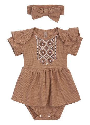 Дуже ніжний комплект молочного кольору. Наряд складається з двох предметів: - чоловічок з крильцями; - шапочка з бантиком. Сліп має відкриті рукавчики зі зборкою, закриті ніжки та застібки кнопочки. Такий комплект підійде на виписку з пологового будинку та на кожен день. Тканина – інтерлок-пеньє. Склад 100% бавовна. Розмір Довжина Півобхват Рукав Кроковий 56 46 20 20 12 62 50 22 22 14 68 56 24 23 17 Артикул: 900511