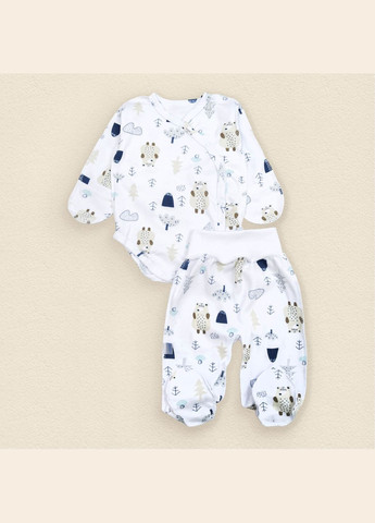 Комплект для найменших у пологовий будинок з тканини інтерлок. У наборі боді та повзунки: 1. Боді має зовнішні шви, кнопочки по всій довжині, рукави зі вшитими царапками, милий принт; 2. Повзунки з широкою резинкою, закритими ніжками та зовнішніми швами. Склад 100% бавовна. Розмір Довжина боді Пів обхват боді Рукав Довжина повзунівв Пів обхват повзунів Шаговий 56 33 21 23 32 16 16 62 36 23 23 35 17 18 Артикул d945пд-мл