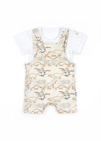 Класно, коли дитині зручно проводити літні дні в пісочниці, на пляжі, в колисці. Правда? Всі мами шукають наряд, в якому буде поєднуватися і комфорт і краса. Перед вами комплект ромпер-пісочник і футболка. Ромпер бежевого кольору із динозаврами. Футболочка білого кольору із принтом динозаврика на рукаві. Набір пошитий з тканин інтерлок і кулір, вони натуральні і добре пропускають повітря. Склад: 100% бавовна. Розмір 68 - довжина пісочника 42 см, ширина пісочника 25 см, довжина футболки 29 см, ширина футболки 22 см. Розмір 74 - довжина пісочника 44 см, ширина пісочника 26 см, довжина футболки 32 см, ширина футболки 24 см. Розмір 80 - довжина пісочника 47 см, ширина пісочника 27 см, довжина футболки 34 см, ширина футболки 25 см. Артикул: d922дн-бж