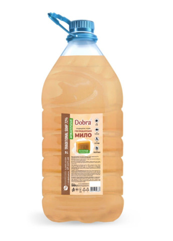 Господарське рідке мило Dobra 72% — антибактеріальне господарське мило для ручного та машинного прання. Близьке за своїми якостями до знайомого з дитинства кускового господарського мила. Підходить для миття рук і посуду, для прибирання оселі.