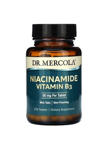 Niacinamide Vitamin B3 від Dr Склад: Розмір порції: 1 таблетка Порцій в упаковці: 270 В одній добовій порції % від добової потреби Ніацин (ніацинамід) (вітамін B3) 50 мг 313%