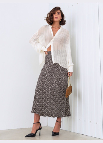 Стильний костюм дрібної в’язки. Вкорочений жилет вільного крою з спущеним плечем. З V-подібним вирізом і відкладним коміром. Декорований горизонтальними смугами, що створюють контраст. Застібається на великі ґудзики по всій довжині. Штани прямого крою з легким розкльошенням. Манжети виробу декоровані контрастною каймою, що гармоніює з візерунком жилету. Талія виконана гумкою для комфортної посадки по фігурі.