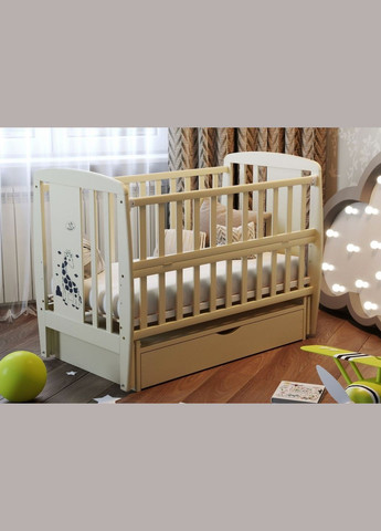 Ліжечко Дубок Ведмедик з ящиком - ідеальний варіант для немовляти. Виготовлена ​​із натурального дерева - цільної деревини бука. Лаки - на водній основі, мають сертифікат якості та відповідають усім вимогам міжнародного стандарту, повністю гіпоалергенні. Ліжечко Дубок Ведмедик має три рівні висоти дна, яке виготовлене з ортопедичних ламелей. Маятниковий механізм оснащений підшипниками. Особливості товару: Відкидний бік Три рівні регулювання дна ліжечка Дно - дерев'яні бічні ламелі Маятниковий механізм заколисування Виготовлений із масиву - бук Розміри: 120 х 60 см. Призначений для дітей віком від 0 до 5-6 років.