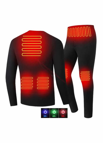 Термобілизна з підігрівом – зручний та практичний одяг для різних видів активного відпочинку, таких як: катання на лижах, рибалка, біг, полювання, їзда на велосипеді, мотоциклі, піші прогулянки тощо. Крім цього, термобілизна з підігрівом допомагає полегшити симптоми багатьох захворювань, зігріває в холод при малорухливому способі життя, покращує кровообіг та обмін речовин. Зони обігріву На реглані: 1. Плечі; 2. Спина; 3. Поясниця. На штанах: 1. Поясниця; 2. Коліна. Особливості • Нагрівальний елемент виготовлений із вуглецевого волокна. • Тканина, з якої виготовлена термобілизна, м'яка та приємна для шкіри. • Контроль температури, підігрів у зонах колін, спини та поясниці. • Живлення від будь-якого портативного зарядного пристрою USB 5V/2А, USB-роз'єм сумісний з більшістю портативних зарядних пристроїв на ринку. • Нагрівання відбувається протягом 30 секунд. • Три рівні регульованої температури з індикатором. • Конструкція захисної ізоляції: вбудований модуль теплового захисту, безпечна напруга 5V. Примітка: при перегріві спрацьовує тепловий захист, припиняється нагрівання і не відновлюється до повернення до стандартної температури. • Неінтенсивне ручне прання або делікатний режим машинного прання не впливає на систему підігріву. Характеристики • Походження: Китай • Колір: чорний • Стать: унісекс • Матеріал: 95% бавовна + 5% спандекс, дріт із вуглецевого волокна • Розмір: L (50-52): Зріст, см: 181-187 Охоплення грудей, см: 103-111 Охоплення талії, см: 91-99 Охоплення стегон, см: 102-110 Комплектація • термоштани з підігрівом – 1шт; • термореглан з підігрівом – 1шт; • павербанк – опціонально (до комплекту не входить) Розмірна сітка Можна купити термоштани або термореглан окремо, уточнюйте у менеджера. Рекомендації щодо експлуатації Перед використанням повністю зарядіть зовнішній акумулятор. Підключіть блок живлення до гнізда, розташованого в кишені. Натисніть і утримуйте кнопку УВІМК/ВИМК протягом трьох секунд. Початкова температура 50 ℃ (червоний світлодіод), проміжна температура 40 ℃ (синій світлодіод) та найнижча 30 ℃ (зелений світлодіод) Обслуговування Зніміть блок живлення перед машинним пранням. Будь ласка, складіть одяг у сумку для прання. Також, щоб забезпечити тривалий термін служби одягу, вибирайте делікатний режим прання та сушіння.