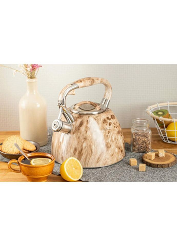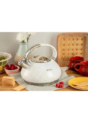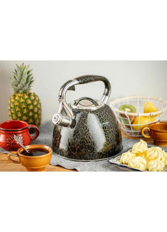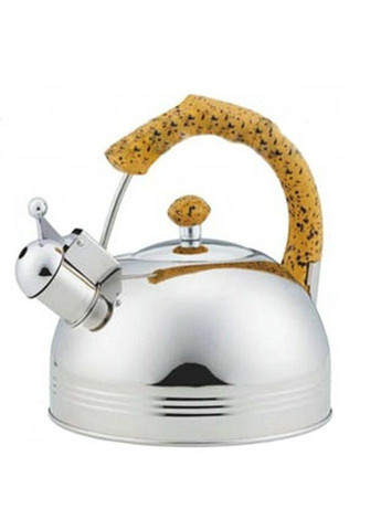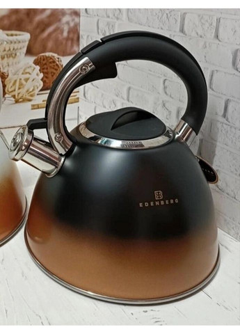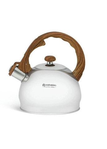 Чайник зі свистком Edenberg EB-1908 Корпус чайника Edenberg EB-1908 виконаний з високоякісної екологічно чистої нержавіючої сталі, покритою емаллю. Подвійне капсульне дно та спеціальна конструкція забезпечує швидке закипання води. Оснащений свистком із важелем для відкриття зливного носика. Кришка і ручка, що не нагрівається, покрита шаром силікону. Сумісний з усіма видами плит, включаючи індукційні. Особливість цієї моделі – малюнок чайника змінює колір при закипанні води. Характеристики: Тип: чайник зі свистком Тип ручки: фіксована Матеріал: нержавіюча сталь Матеріал ручки: бакеліт Об'єм: 3 л Індикатор нагріву Форма: кругла Колір: різні кольори Виробник: Edenberg