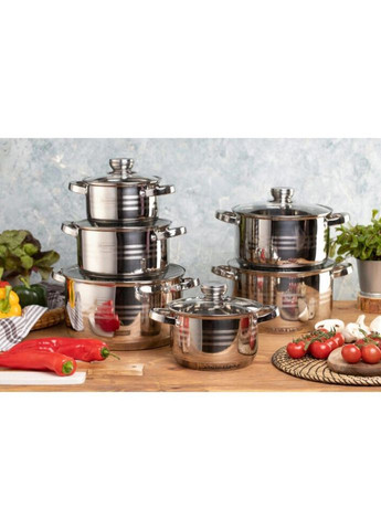 Набір каструль Edenberg EB-4037 Набір каструль Edenberg EB-4037 виготовлений із нержавіючої сталі, що гарантує тривалий термін служби та чудові експлуатаційні якості. Посуд із нержавіючої сталі не окислюється і легко миється. Великі та зручні ручки каструлі. Характеристики: Тип: набір каструль Матеріал: нержавіюча сталь Матеріал ручки: нержавіюча сталь Матеріал кришки: жаростійке скло Кількість предметів: 12 Підходить для всіх типів плит Колір: сірий Виробник: Edenberg Комплектація: Каструля з кришкою 16 см 2.1 л: 1 шт Кастру 18 см 3 л: 1 шт Каструля з кришкою 20 см 4 л: 1 шт Каструля з кришкою 22 см 5.1 л: 1 шт Каструля з кришкою 24 см 6.6 л: 1 шт Каструля з кришкою 26 см 7.5 л