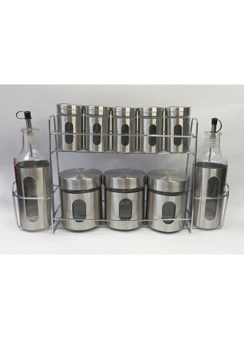 Набір для спецій Edenberg EB-18029 Набір для спецій Edenberg EB-18029 виготовлений із якісного матеріалу. Висока міра міцності матеріалу дозволяє уникнути сколів, а також подряпин при взаємодії зі столовими приладами, придатна для щоденного інтенсивного використання. Характеристики: Тип: набір спецій Матеріал: скло, нержавіюча сталь Матеріал підставки: нержавіюча сталь Кількість предметів: 11 Стильний дизайн Колір: сріблястий Виробник: Edenberg Комплектація: Ємність для олії та оцту: 2 шт Ємність 250 мл: 3 шт Ємність для спецій: 5 шт