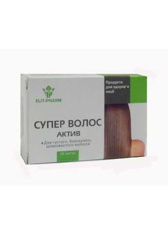 Препарат Супер Волос Актив допоможе оживити та оздоровити волосся, запобігти їх випаданню. Рекомендується як засіб, що сприяє поліпшенню стану волосся. Склад мг/капс.: метіонін – 25,0, цистин – 25,0, міді аспарагінат – 3,7, цинку аспарагінат – 26,6, заліза фумарат – 18,0, дріжджі пивні – 50,0, кальцій фосфорнокислий – 85 ,0, марганцю аспарагінат – 7,0, кальцій вуглекислий – 100,0, фолієва кислота – 0,15, вітамін В6 (піридоксин) – 1,5. Кожна капсула містить, мг: міді – 1,0, цинку – 7,5, заліза – 6,0, кальцію – 56,5, марганцю – 1,0. Спосіб застосування: дорослим та підліткам з 16 років на початку курсу по 2 капсули вранці та ввечері за 15-20 хвилин до прийому їжі протягом 15-30 днів. Після цього перейти на прийом 2-х капсул вранці. Курс прийому 2-3 місяці, який рекомендується повторювати 2-3 рази на рік. Зберігання: зберігати в сухому місці при температурі не вище 25 °С. Термін зберігання: 2 роки від дати виготовлення. Виготовлено в Україні: Сертифіковано Міністерством Охорони Здоровя України Якість гарантуємо !!!