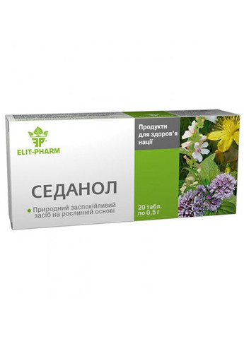 Дієтична добавка до раціону Седанол може бути рекомендована як природне джерело біологічно активних речовин, що сприяє зниження проявів стресу, напруги, підвищеного хвилювання. Активні речовини Магній знижує збудливість нейронів і нейром’язове перенесення, бере участь у багатьох ферментативних процесах. Регулює збудливість нервової системи, частоту серцевих скорочень і артеріальний тиск. Меліса знижує рівень стресу та тривожності, покращує якість сну та нормалізує настрій. Мелісу застосовують у лікуванні розладів невротичного спектра в якості заспокійливого засобу. Також меліси трава застосовується в терапії безсоння, вегетосудинної дистонії. Валеріана допомагає розслабити м’язи та зняти напругу, що сприяє швидкому і легкому засинанню. Завдяки своїм заспокійливим ефектам валеріана також знижує тривогу і стрес перед сном, що є однією з поширених причин безсоння. Показання Може бути рекомендовано: при підвищеній дратівливості; при неврозах; при порушеннях засипання, безсонні; при гіпертонії; для зниження проявів передменструального та клімактеричного синдромів; при нейродерміті. Спосіб застосування Дорослим по 1 таблетці 1 раз на день ввечері після їди. Тривалість курсу прийому узгоджується з лікарем. Застереження: У разі вагітності, годування груддю, прийому медичних препаратів або наявності будь-яких захворювань слід проконсультуватися з лікарем перед вживанням харчових добавок. У разі виникнення побічних реакцій припиніть використання та проконсультуйтеся з лікарем. Зберігати в недоступному для дітей місці. Не використовувати, якщо зовнішня захисна мембрана відсутня або пошкоджена. *** Виробник залишає за собою право змінити зовнішній вигляд упаковки, склад та/або консистенцію продукту. **** БАД не є лікарським засобом!