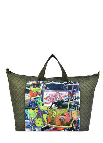 жіноча сумка. Матеріал - поліестер з водовідштовхувальним просоченням. Передня панель - бавовняна тканина з покриттям "металік". На задній панелі великий прорізна кишеня на блискавки. Дві нерегульовані ручки висотою 23 см, одне відділення на блискавці. Усередині поліестерова підкладали, прорізний кишеньку на блискавці. Ергономічна і дуже легка, не пропускає вологу.