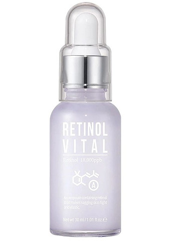 Опис Сироватка для обличчя проти зморщок з ретинолом Приготуйтеся зануритися у світ краси, молодості й сяйва завдяки Retinol Vital Ampoule Serum. Ця інтенсивна сироватка бренда Esfolio подарує шкірі все, що їй потрібно для бездоганного вигляду! Вона бореться з ознаками старіння і зменшує видимість зморщок завдяки здатності стимулювати синтез колагену, еластину й гіалуронової кислоти в глибинних шарах епідермісу. Особливості Esfolio Retinol Vital Ampoule Serum: - прискорює оновлення клітин, підвищує пружність й еластичність шкіри;- сприяє зменшенню недосконалостей обличчя, зменшує вироблення себуму, завдяки чому епідерміс стає ніжним і бархатистим;- активізує більше вироблення захисних ліпідів і зміцнювання захисного бар'єра;- розгладжує дрібні й мімічні зморшки;- злегка освітлює тон, знебарвлює коричневі плями;- допомагає контролювати водний баланс клітин;- збільшує синтез керамідів, що до створення міцнішого, здоровішого шкірного бар'єра. Спосіб застосування Після очищення і тонізації нанесіть кілька крапель на шкіру і м'якими масажними рухами нанесіть на все обличчя. Склад Water(Aq), Butylene Glycol, Glycerin, Niacinamide, Glycereth-26, Dimethicone, Benzyl Glycol, Sorbitan Sesquioleate, Betaine, Sodium Hyaluronate, Nelumbo Nucifera Phytoplacenta Culture Extract, Citrus Limon (Lemon) Fruit Extract, Polyglyceryl-4 Caprate, Arginine, Carbomer, Tocopheryl Acetate, Trehalose, Panthenol, Glyceryl Acrylate/?Acrylic Acid Copolymer, Xanthan Gum, Adenosine, Dipropylene Glycol, Pvm/?Ma Copolymer, PEG-35 Castor Oil, Alcohol, Hydrogenated Phosphatidylcholine, Aesculus Hippocastanum (Horse Chestnut) Seed Extract, Macadamia Ternifolia Seed Oil, Caprylic/?Capric Triglyceride, Polysorbate 20, Hydrogenated Lecithin, Sodium PCA, Serine, Retinol (18,000Ppb), Tremella Fuciformis Sporocarp Extract, Tocopherol, Glycine, Cholesterol, Ceramide NP, Alanine, Brassica Campestris (Rapeseed) Sterols, Glutamic Acid, Ceteth-5, Ceteth-3, Inositol, Retinyl Palmitate, Calcium Pantothenate, Potassium Cetyl Phosphate, Linoleic Acid, Sucrose Stearate, Stearic Acid, Phytosphingosine, Palmitic Acid, Glycosphingolipids, Biotin, Disodium EDTA, Chlorphenesin, 1,2-Hexanediol, Ethylhexylglycerin, Fragrance(Parfum)