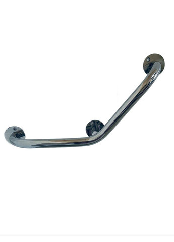Поручень посилений кутовий для людей з інвалідністю, Ø20мм - 350х350 мм, нержавіюча сталь. Товщина сталі 1.5 мм. Поручні призначені для використання в санвузлі, ванній кімнаті та інших приміщеннях, де хворим та ослабленим людям необхідна додаткова опора при підйомі та переміщенні. Кріплення поліровані нержавіючі фланці в стіну товщина 3 мм - 3 шт. Висота установки настінних поручнів 700-800мм.