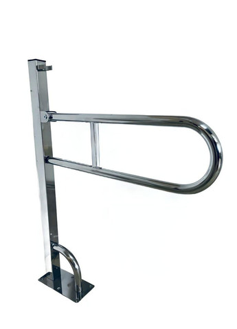 Поручень напольний відкідний для людей с інвалідністю, Ø 32 мм - 700х1000 мм. Товщина сталі 1.5 мм. Поручні призначені для використання в санвузлі, ванній кімнаті та інших приміщеннях, де хворим та ослабленим людям необхідна додаткова опора при підйомі та переміщенні. Кріплення полірована пластина з н/ж сталі (фланець 3мм) в підлогу 1 шт.