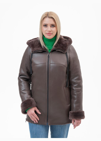 Жіноча шкіряна куртка з глибоким капюшоном. Модель дуже жіночна. Пояс двосторонній: шкіра та тканина стрейч. З боків дві функціональні кишені. Застібка: на блискавку. Довжина: 57 см.