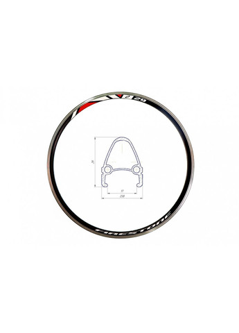 Міцний, двостінний, алюмінієвий обід виробництва компанії Velotrade. Бічна поверхня обода має проточку, для використання з ободними гальмами типу V-brake або кліщовими. Отвори під стандартні спиці завтовшки 14G. Висота профілю обода 29мм, а внутрішня ширина 17мм. Обід підійде під стандартні шини шириною від 1,5 до 2,2 дюйма.