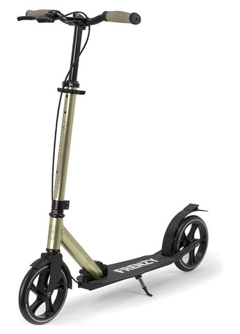 Frenzy 205 mm Kaimana – комфортний прогулянковий самокат в ультрасучасному виконанні та кольорах. Для гарного накату та стабільної їзди нерівною дорогою передбачені ширша дека та затискач у верхній частині керма. Злегка вигнутий руль, стильні матові кольори та контрастні деталі надають самокату витонченого вигляду, а зносостійке анодоване покриття – довговічність. Удосконалений складний механізм забезпечує компактне зберігання та транспортування. Оснащений сталевим ножним гальмом, алюмінієвою паркувальною ніжкою та зручним ремнем для перенесення. Ідеальне рішення для подорожей та повсякденних поїздок на навчання та роботу. Frenzy - Британський бренд, створений засновниками фристайлових самокатів Slamm пропонує преміум колекцію прогулянкових самокатів за доступною ціною. особливості: збільшена за шириною дека – для більшої стабільності на нерівній дорозі регульований по висоті руль із гумовими грипсами затискувач у верхній частині запобігає небажаному обертанню керма на нерівних ділянках дороги. гальмо ножа з міцної сталі простий та надежний складний механізм для компактного зберігання та транспортування ремень для зручного перенесення зносостійке анодоване покриття поліуретанові колеса преміум класу діаметром 205 мм та жорсткістю 82А підшипники класу ABEC 7 оснащення алюмінієвою паркувальною ніжкою колеса та грипси виконані в натуральному кольорі підходити дітям віком від 8 років та дорослим максимальна вага райдера – 100 кг