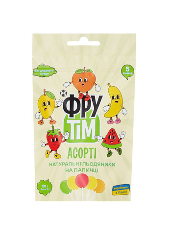 Натуральні льодяники на паличці Фрутім, асорті - ці солодощі подарують насичений фруктовий смак та максимальну користь. Для їх виготовлення використовуються лише ретельно відібрані українські фрукти, які пройшли спеціальну термообробку. Основні переваги: не підвищують рівень цукру в крові та не сприяють розвитку карієсу у складі — природний підсолоджувач, який корисний для зубів та ясен використовуються тільки натуральні ароматизатори з плодів, ягід та овочів: ефірні олії, екстракти та настої Характеристики Вага: 50 г Виробник: Фрутім, Україна.