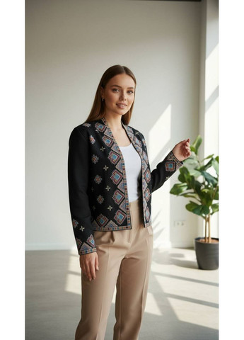 Перед замовленням ознайомтесь із замірами: Заміри: 🔹 Розмір S Пог — 53 см Довжина — 57 см Довжина рукава від горловини — 72 см 🔹 Розмір M Пог — 55 см Довжина — 58 см Довжина рукава від горловини — 74 см 🔹 Розмір L Пог — 56 см Довжина — 60 см Довжина рукава від горловини — 77 см Похибка вимірювання: ±1 см Стильний піджак з вишивкою без застібок. Підходить приблизно для розмірів від 42 до 50 (дивіться заміри). Доступний у двох класичних кольорах: білий та чорний. Ідеальний варіант для створення вишуканого образу з акцентом на деталях.