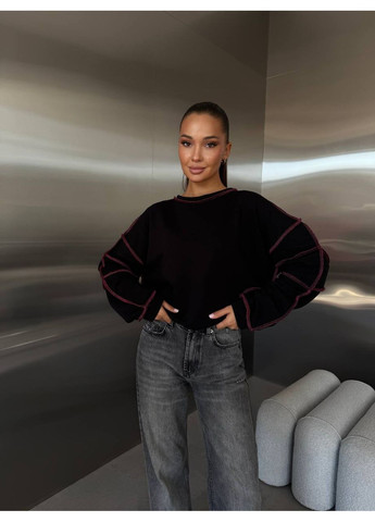Перед замовленням ознайомтесь із замірами Розмір: 42/46 Стильний та зручний світшот з контрастними швами для щоденного гардеробу. 🖍️ Тканина: легка турецька петля — приємна до тіла та добре тримає форму. 🖍️ Крій: вільний, забезпечує комфорт і сучасний вигляд. 🖍️ Стиль: легко поєднується з джинсами або спортивними штанами для невимушених образів. 🖍️ Кольори: чорний, білий, ніжно-блакитний. 🖍️ Розмір: 42/46