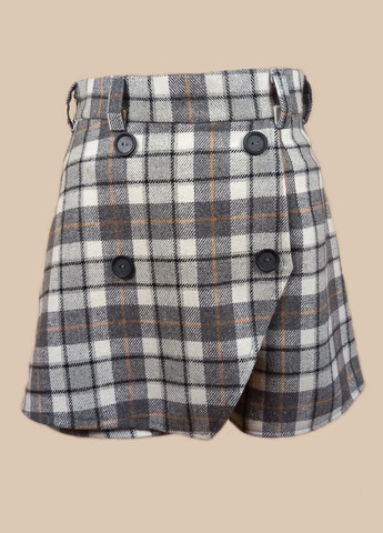 Дитячі шорти помірного обсягу На переді відлітна деталь, що імітує спідницю. Відлітна деталь фіксується чотирма декоративними ґудзиками.