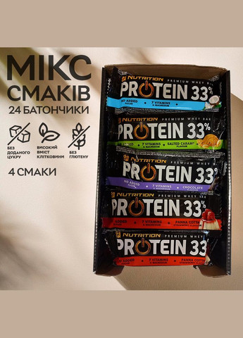 Вміст елементів у 1й порції: 50 грам Калорії 226 ккал Жир 14 г - насичені 9 г Вуглеводів 16 г - цукор 0,8 г Харчові волокна 4 г Протеїн 11,5 г Сіль 0,35 г Інгредієнти Ягоди (білки 25% (концентрат сироваткового білка WPC 80 (з молока), ізоляти молочного білка MPI, суміш молочних білків і сухої сироватки (молоко)), топлене масло (топлене масло) (молоко), зволожувач : гліцерин, сушені фрукти 10,5% [журавлина 5% (журавлина, ананасовий сироп, концентрований ананасовий сік, соняшникова олія, рисове борошно), родзинки (родзинки, бавовняна або соняшникова олія), ліофілізована малина 0,5%], мальтитол, розчинна клітковина (кукурудза), кукурудзяний крохмаль, тростинова патока, соєвий ізолят, вівсяні пластівці, розчинна клітковина (гуміарабік), розпушувач: карбонати натрію, морська сіль, ароматизатор, льтитин; кориця, підсолоджувач: сукралоза.) Брауні (молочні білки 25% (концентрат сироваткового білка WPC 80 (з молока), ізоляти молочного білка MPI, суміш молочних білків та сухої сироватки (молоко)), топлене масло (топлене масло) (молоко), шоколад 12% (підсолоджувач: мальтит; терте какао, емульгатор: лецитин (з сої); какао зі зниженим вмістом жиру, натуральний ванільний ароматизатор), зволожувач: гліцерин; підсолоджувач: мальтити; розчинна клітковина (кукурудза), кукурудза какао зі зниженим вмістом жиру, розчинна клітковина (акація), крохмаль тапіоки, морська сіль, сіль, ароматизатори, розпушувач: карбонати натрію; емульгатор: лецитини (з соєвих бобів); підсолоджувач: сукралоза) Солена карамель (молочні білки 25,2% [концентрат сироваткового білка WPC 80 (з молока), ізоляти молочного білка MPI, суміш молочних білків та сухої сироватки (молоко)], топлене масло (гхі) (молоко)), зволожувач: гліцерин, негідрогізований пальмовий жир, підсолоджувач: мальтити; зниженим вмістом жиру, натуральний ароматизатор ванілі), очеретяна патока, розчинна клітковина (акація), соєвий ізолят, розпушувачі: карбонати натрію, морська сіль, емульгатор: лецитин (соєвий); )