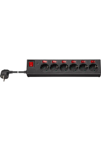 Подовжувач з захистом від перенапруги 3500W 16A. Окремі вимикачі з підсвіткою для кожної розетки і повного вимкнення. Розетки повернуті на 45° для використання кутових вилок безпосередньо одна біля другої. Поставляється з кабелем довжиною 1.5м. Усі вхідні канали обладнані зсувними захисними кришками. CE WEEE.