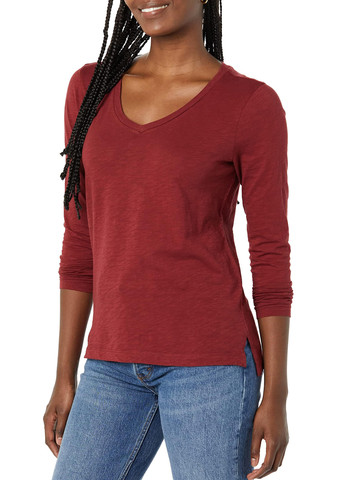 Жіноча бавовняна футболка Amazon Essentials з v-подібним вирізом і довгими рукавами. Ця легка повсякденна футболка, незамінна в гардеробі, забезпечує комфортне повсякденне носіння. Goodthreads ставить собі завдання створювати неймовірний одяг за доступними цінами. Наш жіночий одяг є ідеальним балансом жіночності та стилю шибеника, заснований на джинсах і всьому, що ви з ними носите. Бренд Amazon.