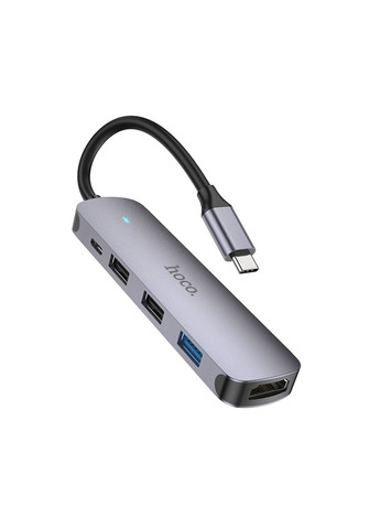 Цю модель з натяжкою можна назвати USB HUB, адже класичний роз'єм USB тут є лише один. Проте цей USB порт швидкісний 3.0, розрахований на передачу даних зі швидкістю до 5Gbps, а окрім нього є роз'єм Type-C PD 2.0, видає струм до 3А, а його максимальна вихідна потужність становить 67W. Цієї потужності цілком вистачить для підключення ноутбуків або сучасних персональних комп'ютерів з Type-C інтерфейсом для живлення. БАГАТОФУНКЦІОНАЛЬНІСТЬ Якщо повернутися до роз'єму USB 3.0, то через нього можна під'єднати багато різноманітних пристроїв, як-от клавіатуру, мишку, флешку, кабель USB, кардрідер, принтер, жорсткий диск, геймпад, мережеву карту та навіть ще один HUB із конектором USB. Також хаб оснащений роз'ємом HDMI, що дає змогу підключитися до комп'ютера, смартфона або планшета під'єднати монітор, телевізор або проектор. Максимальне розширення зображення, яке підтримує порт HDMI це 4K/30Hz. СУМІСНІСТЬ USB HUB Hoco HB14 сумісний з більшістю операційних систем, зокрема з такими як Windows та Mac OS. Виробник надав такий перелік сумісних ОС: Windows 7/8/10, Google Chrome OS, Mac OS X Yosemite, Mac OS X EI Capitan, Mac OS sierra. ПРАКТИЧНИЙ ДИЗАЙН Крім функціональності пристрою варто відзначити його зовнішній вигляд, мається на увазі те, що корпус гаджета має зовсім невеликий розмір (59.1 х 53.7 х 12.4 мм) і вагу всього 45 грамів. Більшу частину корпусу виготовлено з алюмінієвого сплаву, а меншу частину з якісного ABS пластику. Кабель, яким USB хаб підключається до пристрою короткий, його довжина 13,5 см. Отже, ви можете купити USB HUB Hoco HB14 з практичним дизайном, щоб без проблем та жодних налаштувань просто підключити пристрій і ним зручно користуватися. Hoco HB14 — компактний та простий у користуванні розгалужувач.