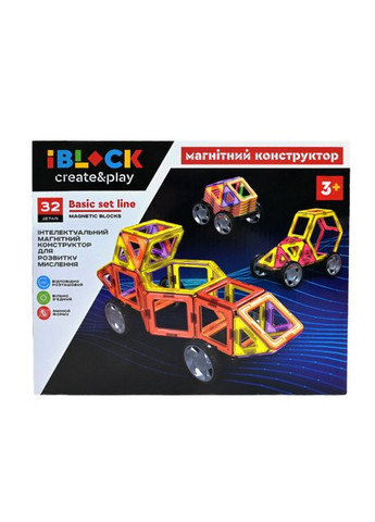 Магнітний конструктор IBLOCK 32 деталі відкриє перед вашою дитиною цілий світ творчих можливостей. Набір складається з яскравих різнокольорових фігурок. Завдяки магнітним елементам у кожній фігурці, конструкція буде міцно триматись і легко з'єднуватись між собою. Діти зможуть навчатися у процесі гри розпізнавати кольори, форми та вивчати основи геометрії. З цим конструктором вийдуть чудові фігурки та предмети. Набір складається з 32 деталей різних форм, колес для створення автомобіля та інструкції до нього. Іграшка розвиває тактильне та візуальне сприйняття, просторове та абстрактне мислення, уяву і покращує дрібну моторику. Всі деталі виготовлені з високоякісних матеріалів, безпечних для дітей, без гострих кутів. Рекомендовано для дітей від 3-х років.