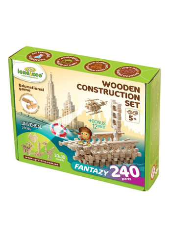 Конструктор «ФАНТАЗІЯ 240» — чудовий спосіб для дитини провести час весело та з користю від "Igroteco"! Цей універсальний конструктор має справді казкові можливості! Він не обмежує дитину будь-якими рамками, даючи змогу реалізовувати найрізноманітніші її задуми! Якщо ж знадобляться додаткові деталі — їх завжди можна буде докупити в наборах по 60, 120 та 240 деталей. Універсальність конструктора ФАНТАЗІЯ виражається в можливості створювати як і прості мозаїчні (2D), так і складні об'ємні фігури (3D), що дозволяє гратися з ним дітям різного віку. Вони здатні надовго заволодіти увагою вашого малюка, дозволяючи споруджувати і проектувати безліч цікавих моделей. Компанія "Ігротеко" розробила спеціальну навчально-розвиваючу методику для дітей дошкільного та молодшого шкільного віку із цікавими ігровими та навчальними завданнями на основі деталей конструкторів ТМ "Ігротеко".