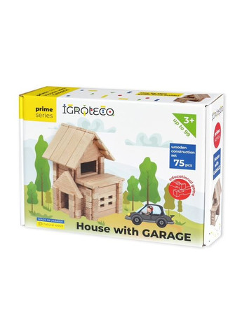 Конструктор «Будиночок з гаражем» призначений для діток від 5-ти років, зібравши виріб по інструкції, дитина отримує компактний двоповерховий дерев'яний будинок з балконом та гаражем для улюбленої машинки. Зібрати його буде легко та цікаво; кожен з етапів зображений у детальній інструкції. Конструктор чудово доповнює ігри з машинками. З'єднання 75 деталей набору - серед яких бруси, півбруси та елементи для побудови дахової конструкції - дасть дитині розуміння основ будівництва помешкань зі зрубу - аутентичному українському методу зведення хат у Карпатах. Бруси та півбруси мають пази для скріплення між собою. Січення брусів - квадратне. Найкоротша деталь - 24 мм. Найдовша - 120 мм. Іграшка виготовлена з твердих порід деревини, не лакована, не фарбована. Іграшка є абсолютно натуральною, екологічною, адже виготовлена з цільної деревини, не містить жодних лако-фарбових покриттів, емульсій, клеїв чи шкідливих домішок. Гра з конструктором розвиває у дитини просторове мислення, логіку, увагу, дрібну моторику та творчі навички. Вміння діяти на базі інструкції, тобто за схемою, поданою у кожному виробі стане гарною базою для швидкого та ефективного навчання у школі. З'єднання деталей не за інструкцією, а за власним бажанням та фантазією, сприятиме розвитку уяви, нестандартного мислення, творчості. Всі вироби ТМ "Ігротеко" поєднуються між собою, тому можна їх колекціонувати. Маючи більше конструкторів ТМ «Ігротеко», дитина зможе побудувати ціле місто з різними видами споруд! Увага! Як і справжні будинки, наші конструктори радимо починати складати з фундаменту! На рівній твердій поверхні викладіть найнижчий рівень, а потім рівень за рівнем, брус за брусом зводьте стіни, перекладайте деталі паз-в-паз, кріпіть їх, робіть перемички, з’єднуйте прибудови і накривайте дахом! Все як у справжньому житті!