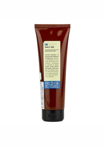 Опис Маска енергетична для щоденного застосування для волосся - Insight Energizing Mask Insight - італійська компанія, яка займається виробництвом колосального асортименту продукції. Вона призначена для догляду за красою і здоров'ям всього тіла. Завдяки її продуктам ваше тіло буде здоровим та доглянутим. Саме за допомогою засобів цього бренда ви зможете досягти бажаного результату. Енергетична маска для волосся, схильного до пошкоджень та втрати сили, стане незамінним атрибутом у щоденному використанні. Корисні речовини, які включені до складу засобу, здатні проникати вглиб волосків та водночас впливати і зовні, і всередині. Мінерали та вітаміни активізують процес регенерації. Вони наповнюють кожну волосинку енергією по всій довжині. Як результат, ваше волосся - гладеньке та слухняне. На дотик - приємні й шовковисті, а на вигляд - здорові та сяючі. Спосіб застосування Спосіб застосування: нанести на вологе волосся, рівномірно розподіливши по всій довжині. Залишити на 5-10 хвилин. Ретельно змити. Склад Aq (Water), Cetearyl Alcohol, Cetrimonium Chloride, Distearoylethyl Dimonium Chloride, Myristyl Alcohol, Helianthus Annus (sunflower) seed oil, zea mais (Corn) Germ Oil, Citrus Limon (Lemon) Fruit Extract, Prunus Armeniaca (Apricot) Kernel Oil, Hydrogenated Vegetable Oil, Butyrospermum Parkii (Shea) Butter, tocopherol, parfum (fragrance), Citric Acid, Benzyl Alcohol, Glyceryl Laurate, Sodium Benzoate, Potassium Sorbate.