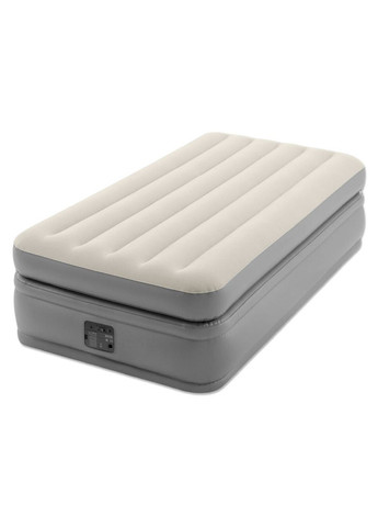 Надувне ліжко розраховане на одного користувача. Солідна висота, для маскимальної зручності. Вбудований електронасос для надування та здування виробу. Сумка для зберігання. Максимальне навантаження 136 кг. Флокове покриття. Сірий з бежевим колір.