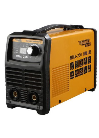 Опис Kaiser MMA-300 HOME LINE Зварювальний інвертор Компанія Kaiser представила нову модель зварювального інвертора з дуговим типом зварювання - MMA-300 HOME LINE . Це пристрій для ручного дугового зварювання (MMA) і наплавлення покритим штучним електродом, з постійним струмом до 300 А і максимальним діаметром електродів 5 мм. Функції: • «Hot start» (гарячий старт): для підпалу електрода подаються максимальна величина струму. • « Anti-Sticking »: при короткому замиканні зварювальний струм знижується до мінімуму. • « Arc Force »: для запобігання залипання в момент відриву краплі металу струм зростає до оптимального значення. • Повітряно-примусове охолодження • Захист від перегріву Модель ММА-300 HOME LINE має поліпшений комплект аксесуарів - тримач електродів і затиск маси на 500 А, збільшена довжина зварювальних кабелів (загальна 5,5 м, 3 + 2,5). Додаткова перевага - ПВ 80%. Такий варіант широко поширений в побуті і на виробництві. А також перевагою цієї моделі є мала вага (5 кг), завдяки якому інструмент буде зручно транспортувати.