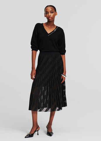 Колір Чорний / Фасон Плісе / Висота посадки Висока талія / Довжина виробу Міді та нижче коліна / Матеріал Поліестер