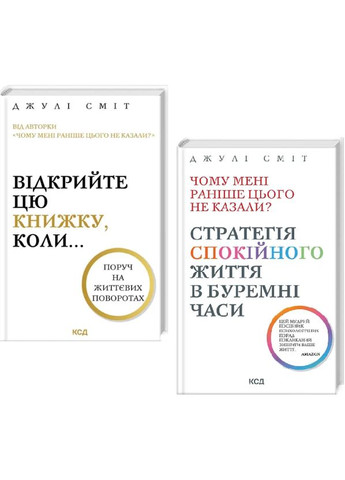 Опис: Книга 1. Чому мені раніше цього не казали? Стратегія спокійного життя в буремні часи Міжнародний бестселер Дослідження ґрунтується на багаторічному досвіді роботи авторки у сфері клінічної психології Докторка Джулі Сміт має понад десять років досвіду роботи клінічною психологинею. Вона одна з перших використала TikTok як інструмент терапії та експрес-порадник у галузі психічного здоров’я. Наразі у докторки Сміт три мільйони підписників. Вона є психологинею BBC Radio 1 Life Hacks. Про неї писали Women’s Health, Buzzfeed, The Telegraph, The Times, The Sunday Mail, Glamour, CNN тощо. Життєві проблеми й турботи повсякчас розхитують емоційний фон та психічне здоров’я. Докторка Джулі Сміт чудово розуміє ваш стан. І має у своєму арсеналі набір терапевтичних інструментів для подолання будь-яких життєвих негараздів, критики, депресії, демотивованості, для зміцнення впевненості в собі та психологічної стійкості навіть у найважчі часи. - Як пояснити свій поганий настрій - Емоційні пастки, яких треба стерегтися - Як змусити стрес працювати на себе та що робити з тривогою - Боротьба зі страхом неминучого та пропрацювання всіх стадій горя - Як змусити себе щось робити, коли бажання немає, і підтримувати почуття мотивації в інших Ваш психічний добробут так само важливий, як і фізичний. Дбаючи про нього, ви закладете фундамент щасливого та стабільного майбутнього для вас і ваших близьких. Формат 150x220 мм Книга 2. Відкрийте цю книжку, коли... Бестселер The New York Times Від авторки «Чому мені раніше цього не казали?» Ця книга - ідеальне продовження бестселера "Чому мені раніше цього не казали?", що допоміг поступово зміцнити психічне здоров'я тисячам людей. Цього разу авторка говоритиме про ті моменти, коли ви вже опинилися в епіцентрі емоційного шторму. Кожен розділ - це окрема життєва ситуація, знайома майже кожному. У формі стилізованих листів докторка Сміт звертається до читача тоді, коли здається, що все виходить з-під контролю через тривогу, розгубленість і сумніви, а опісля надає практичні поради й техніки, які допоможуть побачити ситуацію під новим кутом, знайти опору й зробити перший крок до спокою. "Відкрийте цю книжку, коли..." - це голос підтримки, коли ви найбільше її потребуєте, і лагідне нагадування: вихід є. Формат 150x220 мм
