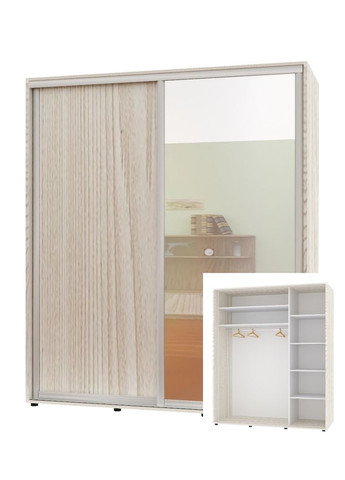 ТОВАР ПІД ЗАМОВЛЕННЯ. ТЕРМІН ВИГОТОВЛЕННЯ 15-20 РОБОЧИХ ДНІВ • Корпус і фасад виробу виготовлений із ламінованого ДСП завтовшки 16 мм. • Крайка зовнішніх деталей 2 мм, полиці, а також ящики 0.5 мм. Алюмінієвий профіль. • Шафи спроєктовані так, щоб забезпечити міцну, безпечну та стійку конструкцію. Компоненти розсувної системи та фурнітура проходять перевірку на міцність і довговічність. • Шафа встановлюється на регульовані ніжки, які дають змогу виставити шафу рівно. • У комплекті передбачені стоєві, дах, дно, внутрішнє наповнення (полиці, труби), напрямні, двері та комплект фурнітури. • Шафа відвантажується в розібраному вигляді заводській упаковці.