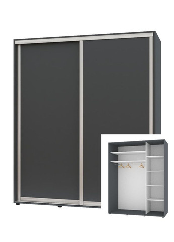 ТОВАР ПІД ЗАМОВЛЕННЯ. ТЕРМІН ВИГОТОВЛЕННЯ 15-20 РОБОЧИХ ДНІВ • Корпус і фасад виробу виготовлений із ламінованого ДСП завтовшки 16 мм. • Крайка зовнішніх деталей 2 мм, полиці, а також ящики 0.5 мм. Алюмінієвий профіль. • Шафи спроєктовані так, щоб забезпечити міцну, безпечну та стійку конструкцію. Компоненти розсувної системи та фурнітура проходять перевірку на міцність і довговічність. • Шафа встановлюється на регульовані ніжки, які дають змогу виставити шафу рівно. • У комплекті передбачені стоєві, дах, дно, внутрішнє наповнення (полиці, труби), напрямні, двері та комплект фурнітури. • Шафа відвантажується в розібраному вигляді заводській упаковці.