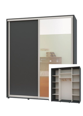 ТОВАР ПІД ЗАМОВЛЕННЯ. ТЕРМІН ВИГОТОВЛЕННЯ 15-20 РОБОЧИХ ДНІВ • Корпус і фасад виробу виготовлений із ламінованого ДСП завтовшки 16 мм. • Крайка зовнішніх деталей 2 мм, полиці, а також ящики 0.5 мм. Алюмінієвий профіль. • Шафи спроєктовані так, щоб забезпечити міцну, безпечну та стійку конструкцію. Компоненти розсувної системи та фурнітура проходять перевірку на міцність і довговічність. • Шафа встановлюється на регульовані ніжки, які дають змогу виставити шафу рівно. • У комплекті передбачені стоєві, дах, дно, внутрішнє наповнення (полиці, труби), напрямні, двері та комплект фурнітури. • Шафа відвантажується в розібраному вигляді заводській упаковці.
