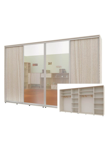 ТОВАР ПІД ЗАМОВЛЕННЯ. ТЕРМІН ВИГОТОВЛЕННЯ 15-20 РОБОЧИХ ДНІВ • Корпус і фасад виробу виготовлений із ламінованого ДСП завтовшки 16 мм. • Крайка зовнішніх деталей 2 мм, полиці, а також ящики 0.5 мм. Алюмінієвий профіль. • Шафи спроєктовані так, щоб забезпечити міцну, безпечну та стійку конструкцію. Компоненти розсувної системи та фурнітура проходять перевірку на міцність і довговічність. • Шафа встановлюється на регульовані ніжки, які дають змогу виставити шафу рівно. • У комплекті передбачені стоєві, дах, дно, внутрішнє наповнення (полиці, труби), напрямні, двері та комплект фурнітури. • Шафа відвантажується в розібраному вигляді заводській упаковці.