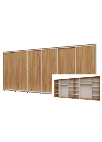 ТОВАР ПІД ЗАМОВЛЕННЯ. ТЕРМІН ВИГОТОВЛЕННЯ 15-20 РОБОЧИХ ДНІВ • Корпус і фасад виробу виготовлений із ламінованого ДСП завтовшки 16 мм. • Крайка зовнішніх деталей 2 мм, полиці, а також ящики 0.5 мм. Алюмінієвий профіль. • Шафи спроєктовані так, щоб забезпечити міцну, безпечну та стійку конструкцію. Компоненти розсувної системи та фурнітура проходять перевірку на міцність і довговічність. • Шафа встановлюється на регульовані ніжки, які дають змогу виставити шафу рівно. • У комплекті передбачені стоєві, дах, дно, внутрішнє наповнення (полиці, труби), напрямні, двері та комплект фурнітури. • Шафа відвантажується в розібраному вигляді заводській упаковці.