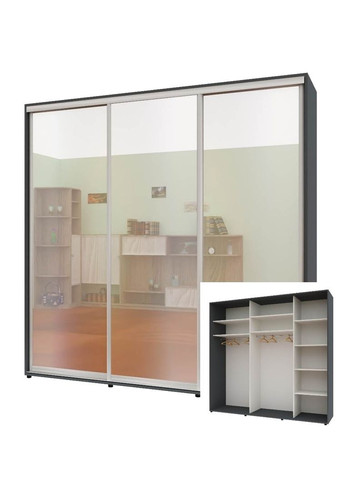 ТОВАР ПІД ЗАМОВЛЕННЯ. ТЕРМІН ВИГОТОВЛЕННЯ 15-20 РОБОЧИХ ДНІВ • Корпус і фасад виробу виготовлений із ламінованого ДСП завтовшки 16 мм. • Крайка зовнішніх деталей 2 мм, полиці, а також ящики 0.5 мм. Алюмінієвий профіль. • Шафи спроєктовані так, щоб забезпечити міцну, безпечну та стійку конструкцію. Компоненти розсувної системи та фурнітура проходять перевірку на міцність і довговічність. • Шафа встановлюється на регульовані ніжки, які дають змогу виставити шафу рівно. • У комплекті передбачені стоєві, дах, дно, внутрішнє наповнення (полиці, труби), напрямні, двері та комплект фурнітури. • Шафа відвантажується в розібраному вигляді заводській упаковці.