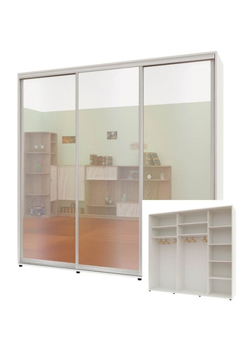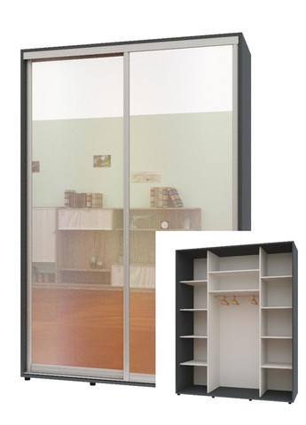 ТОВАР ПІД ЗАМОВЛЕННЯ. ТЕРМІН ВИГОТОВЛЕННЯ 15-20 РОБОЧИХ ДНІВ • Корпус і фасад виробу виготовлений із ламінованого ДСП завтовшки 16 мм. • Крайка зовнішніх деталей 2 мм, полиці, а також ящики 0.5 мм. Алюмінієвий профіль. • Шафи спроєктовані так, щоб забезпечити міцну, безпечну та стійку конструкцію. Компоненти розсувної системи та фурнітура проходять перевірку на міцність і довговічність. • Шафа встановлюється на регульовані ніжки, які дають змогу виставити шафу рівно. • У комплекті передбачені стоєві, дах, дно, внутрішнє наповнення (полиці, труби), напрямні, двері та комплект фурнітури. • Шафа відвантажується в розібраному вигляді заводській упаковці.