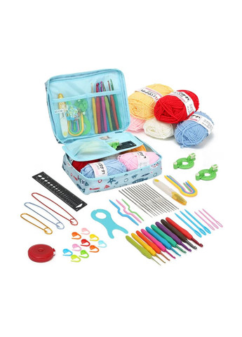 Набір для в'язання гачком з пряжею і аксесуарами - це універсальний комплект, що ідеально підходить як для початківців, так і для досвідчених майстрів. До набору входить все необхідне для створення унікальних виробів: різнокольорові гачки, якісна пряжа і різноманітні аксесуари, які допоможуть вам у будь-якому в'язальному проекті. Цей набір створений для зручності та комфорту. Гачки різних розмірів виготовлені з міцних матеріалів, таких як алюміній і метал, що гарантує довговічність і точність у роботі. Ергономічний дизайн гачків знижує навантаження на руки, роблячи процес в'язання легким і приємним. У наборі присутні 5 молочних ниток з високоякісної бавовни, яка вирізняється м'якістю і міцністю, що дає змогу домогтися відмінних результатів у в'язанні. Завдяки своїй практичній упаковці, всі компоненти набору легко зберігати і транспортувати, що робить його ідеальним подарунком для любителів в'язання. Особливості набору: 12 металевих гачків: 0,6/0,75/0,85/0,9/1/1,1/1,25/1,4/1,5/1,6/1,75/1,9 мм 9 різнокольорових алюмінієвих гачків: 2/2,5/3/3,5/4/4,5/5/5,5/6 мм 5 мотків молочної пряжі (випадкові кольори) Кабельні голки (3 шт.), арочні голки (3 шт.), голки з великим вушком (6 шт.), U-подібні косієві голки (4 шт.) Пристосування для помпонів (2 шт.), намотувальна пластина у формі рибки (1 шт.) Лінійка для калібрування, сантиметрова стрічка і ножиці Зручна сумка для зберігання всіх інструментів Цей набір для в'язання гачком - чудовий вибір для тих, хто хоче творити і створювати своїми руками, чи то прості, чи то складні проекти.