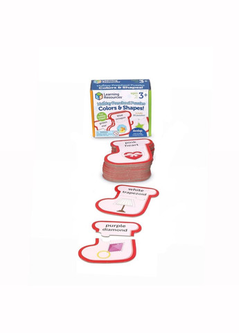 Навчальні пазли "Кольори та форми" (20 шт) Learning Resources Color&Shapes Набір містить пазли, які складаються з двох частин і допомагають дітям на початковому етапі опанувати навички розпізнавання форм та кольорів. Кожен пазл має повнокольорову ілюстрацію, а також веселу саму форму пазла - різдвяна шкарпетка. Кожен пазл має лише один варіант з'єднання, тому діти відразу мають можливість перевірити правильність відповіді. Розмір 1 коробки: 11*12*5 см Рекомендований вік: 3+