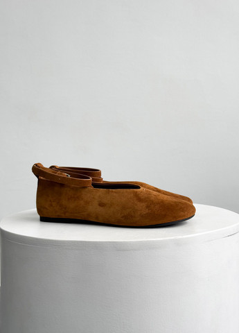 Балетки з ремінцем в рудому кольорі, виготовлені з м'якої натуральної замші. Повнота моделі: середня/широка.