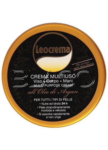 Multipurpose Cream Argan Oil від бренду Leocrema — це крем на основі арганової олії, що підійде для обличчя, тіла та рук. Така універсальність допоможе збільшити кількість вільного місця в косметичці, адже всього один продукт легко прибере сухість та стягнення на усьому тілі. Чарівний аромат крему створить особливий настрій, а також подарує комфорт. Крем швидко відновлює шкіру після зневоднення, забезпечуючи бездоганну гладкість. Особливості Multipurpose Cream Argan Oil від Leocrema: - підійде для усіх типів шкіри;- містить арганову олію, що є джерелом жирних кислот, вітамінів А та Е, а також глибоко живить шкіру;- дарує шовковистість та повертає здоровий блиск;- захищає від сухості та стягнення протягом 24-х годин;- вбирається за лічені хвилини;- можна використовувати одразу після душу, щоб нейтралізувати вплив жорсткої проточної води;- підтримує охайним манікюр, зволожуючи кутикули.