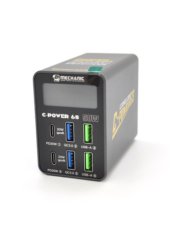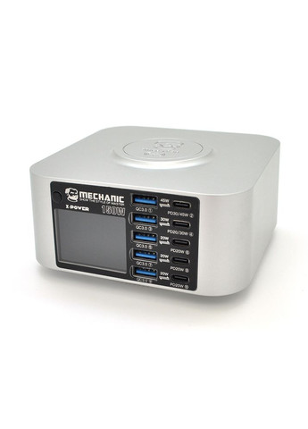 Зарядна станція MECHANIC V-Power 8 Max – це потужне та функціональне рішення для одночасного заряджання кількох пристроїв у домашніх, офісних чи мобільних умовах. З вісьмома портами, включаючи чотири USB-C з підтримкою Power Delivery 3.1 і чотири порти QC3.0, станція забезпечує високу швидкість зарядки смартфонів, планшетів, ноутбуків, розумних годинників та інших гаджетів. Завдяки цифровій індикації ви завжди бачите поточну напругу в мережі, що дозволяє контролювати якість електроживлення та своєчасно реагувати на перепади. Пристрій ідеально підходить для тих, хто використовує кілька пристроїв щодня і хоче уникнути плутанини з кабелями. Чотири порти PD 3.1 підтримують вихідні параметри до 20 В / 2,25 А (45 Вт), що робить їх сумісними з більшістю сучасних ноутбуків, включаючи MacBook, Dell XPS та інші моделі, що потребують потужного заряджання. Порти QC3.0 забезпечують швидку зарядку за стандартом Quick Charge 3.0: 5 В/3 А, 9 В/2 А, 12 В/1,5 А (до 18 Вт). Додаткові два USB-A порти працюють на 5 В/2,4 А (12 Вт) та призначені для підключення старих моделей телефонів, навушників та інших пристроїв. Загальна максимальна потужність заряджання становить 115 Вт, що дозволяє ефективно використовувати всі порти одночасно. Корпус виконаний із міцного вогнестійкого пластику, має компактні розміри та продуману конструкцію, що унеможливлює перекриття великими адаптерами. Вбудовані системи захисту запобігають перевантаженню, короткому замиканню та перегріву. Характеристики: - Вхідна напруга: AC 100-240 В, 50-60 Гц - Загальна вихідна потужність: до 115 Вт - Кількість портів: 8 (4 USB-C + 4 USB-A) - Порти USB-C (PD 3.1): 4 шт., Вихід: 5 В / 3 А, 9 В / 2,2 А, 12 В / 1,67 А, 15 В / 2,25 А, 20 В / 2,25 А (до 45 Вт) - Порти USB-C (QC3.0): 4 шт., Вихід: 5 В / 3 А, 9 В / 2 А, 12 В / 1,5 А (до 18 Вт) - Порти USB-A: 2 шт., Вихід: 5 В / 2,4 А (12 Вт) - Цифровий дисплей: відображення напруги мережі - Автоматичний розподіл потужності між портами - Захист від перевантаження, перегріву, короткого замикання - Матеріал корпусу: вогнестійкий ABS-пластик - Габарити: 114×60×84 мм - Робоча температура: від 0 ° C до 40 ° C - Сертифікація: відповідає міжнародним стандартам безпеки MECHANIC V-Power 8 Max – це надійний та продуктивний центр живлення для тих, хто цінує ефективність, безпеку та порядок. Пристрій спрощує повсякденне використання електроніки, заощаджує місце на робочому столі та забезпечує стабільну зарядку всіх пристроїв без необхідності використання безлічі адаптерів.