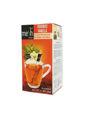 Чай Mesh Stick Ройбос Ванільний: Безкофеїновий Релакс і Солодкість у Стіку (16 шт. х 2 г) Основні Переваги та Властивості Чай Mesh Ройбуш Ванільний — це ароматний і смачний напій, що не містить кофеїну і ідеально підходить для вживання як дітьми, так і дорослими у будь-який час доби. Склад: Ройбуш: Південноафриканський чайний чагарник (природно без кофеїну). Натуральний ароматизатор ванілі: Солодкувато-ванільний аромат. Смак: Солодкий, ванільний, з легкими трав'яними нотками. М'який, зігрівальний, розслаблюючий. Користь для Здоров'я: Не містить кофеїну — можна пити ввечері. Багатий на антиоксиданти, вітаміни та мікроелементи. Допомагає поліпшити травлення, заспокоїти нервову систему, підвищити імунітет. Особливості: Гіпоалергенний чай, підходить людям, схильним до алергій. Універсальність: Можна пити як гарячим, так і холодним. Чудово підходить для втамування спраги в літню спеку. Простота та Чистота Заварювання Mesh Stick Mesh — ваш провідник у світ чайних насолод! Завдяки інноваційній формі стика ви отримуєте чисте та практичне заварювання без чаїнок і без необхідності використовувати ложку. Переваги формату: Зручність: Пакети-стіки дають змогу легко заварювати без чаїнок. Практичність: Ідеальний для заварювання в чашці, термосі або чайнику. Якість: Чайна сітка вироблена з високоякісної сировини. Як Насолодитися Чаєм Mesh Stick: 1. Налийте в чашку до 200 мл гарячої води. 2. Вийміть стік-пакет з індивідуальної упаковки. 3. Помістіть стик у воду. 4. Дайте настоятися чаю, помішуючи стіком, як ложкою, протягом 3-5 хвилин. 5. Після того, як чай набув бажаного Вами смаку, вийміть стік із чашки. Спробуйте чай Mesh ройбуш ванільний і насолодіться його солодким ванільним смаком і ароматом! Гарантія Якості та Безпеки Сітчастий стік представлений вам у спеціальній упаковці відповідно до найвищих стандартів та правил Європейського союзу (ЄС 10/2011) та правил (1935/2004/ЄС та 2023/2006/ЄС (GMP)), що гарантує його абсолютну безпеку при вживанні. Історія Mesh: Смак, Народжений Пристрастю Історія Меша починається зі слова "пристрасть". Mesh був розроблений для того, щоб любителі чаю та кави могли насолоджуватися якісно завареним напоєм у різних часових поясах та умовах протягом дня. Під керівництвом експертів, ретельно відібрані сорти чаю з найважливіших регіонів світу змішуються та представлені у цій зручній упаковці на ваш смак. Обираючи Mesh, ви обираєте інновації та відмінний смак!